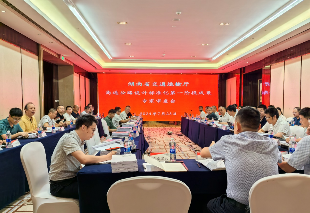 7月23日至24日,湖南省高速公路設計標準化第一期成果審查會在長沙順利召開,湖南省交通運輸廳湖南高速集團、湖南建投集團及編制單位、咨詢單位領導、專家及主要技術人員共50余人參會。湖南交通設計院作為牽頭編制單位,公司黨委書記、董事長向建軍,黨委委員、副總經理、總工程師...